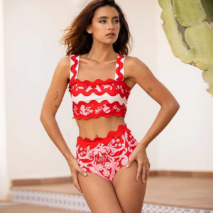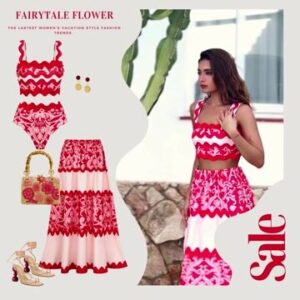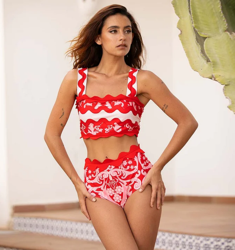 Perfect beach look! The flower bikini is so cute and the high waist design is very flattering. Wore...