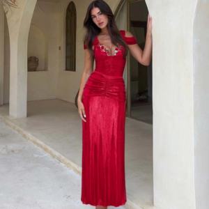 Red Shiny Embroidery Decoration One Piece Swimsuit and Skirt