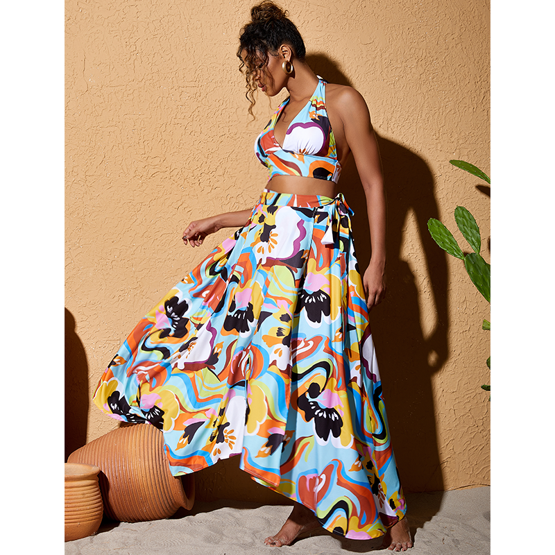 Perfect beach look! The flower bikini is so cute and the high waist design is very flattering. Wore...