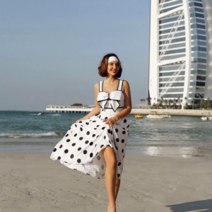 Gorgeous swimsuit! The black one piece with skirt is so elegant. I felt like a fashion model at...
