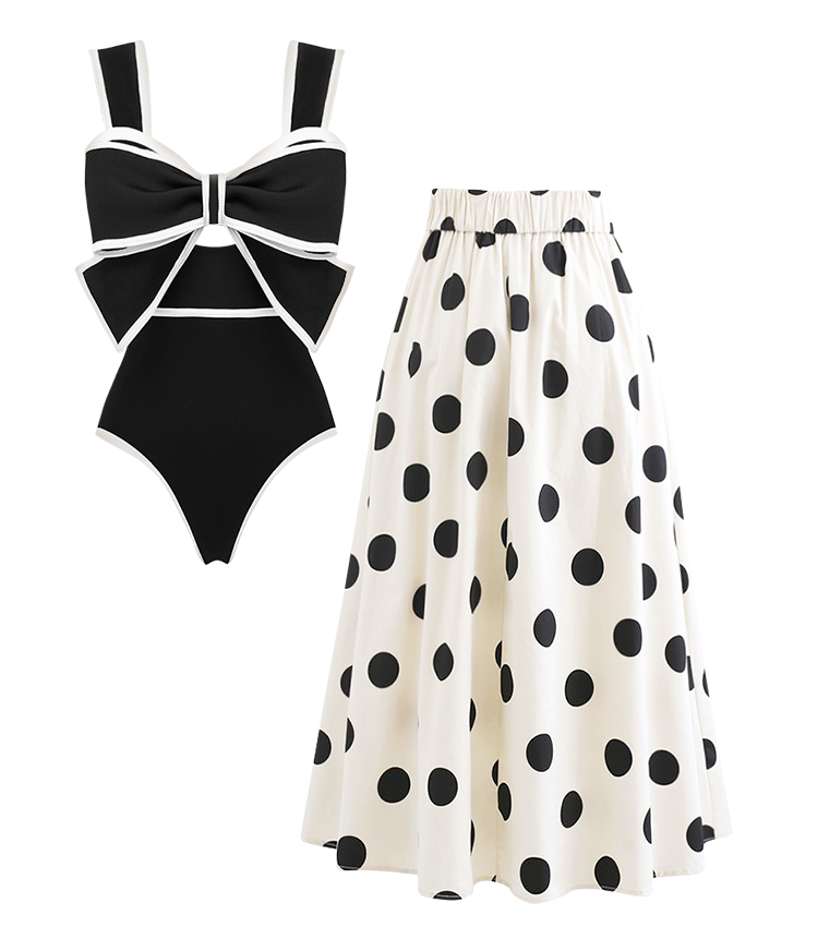 Gorgeous swimsuit! The black one piece with skirt is so elegant. I felt like a fashion model at...
