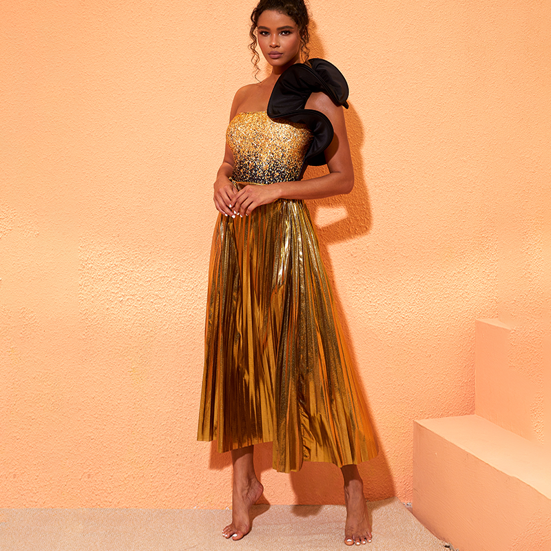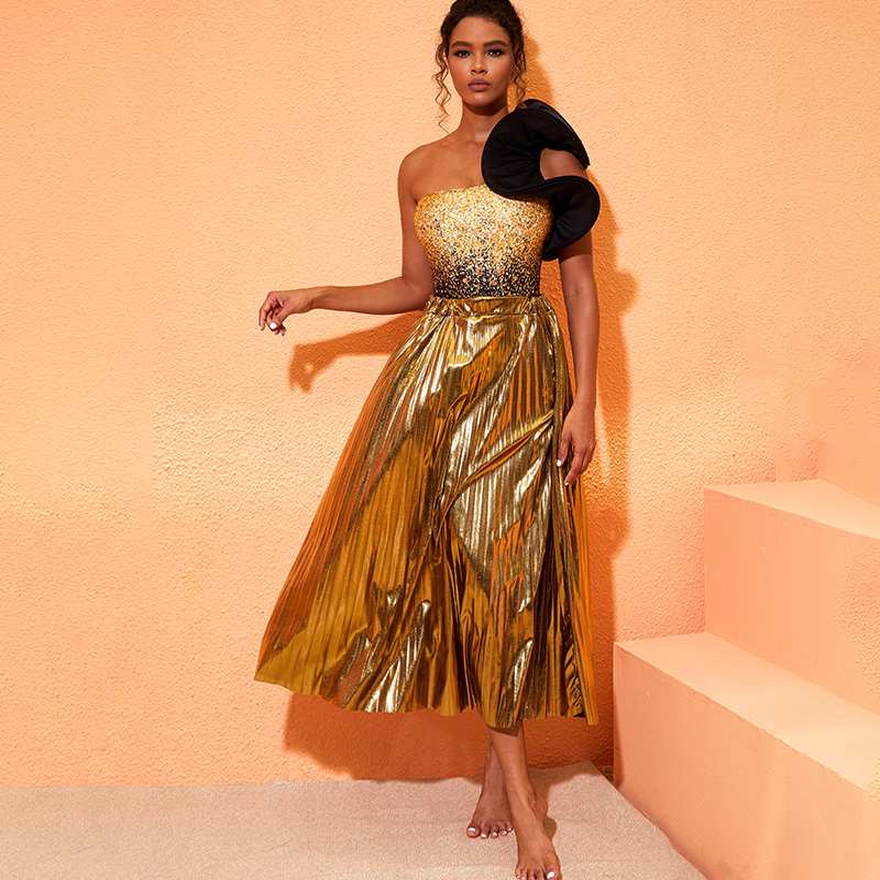 The golden fabric is absolutely gorgeous! I tried it on in the fitting room and was amazed. The...