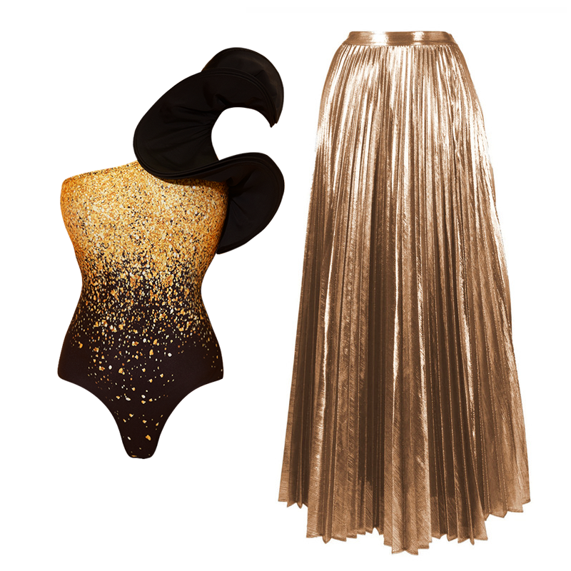 Perfect sunset beach look! This swimsuit is gorgeous. The cutout design with skirt is so elegant and the...