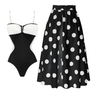 Gorgeous swimsuit! The black one piece with skirt is so elegant. I felt like a fashion model at...