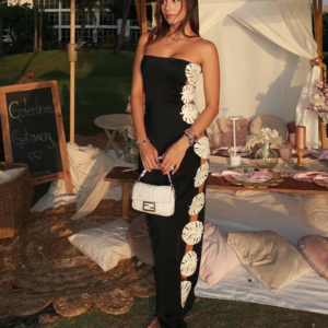 This black one piece is stunning! The 3D flowers add such a luxurious touch. I wore it at...