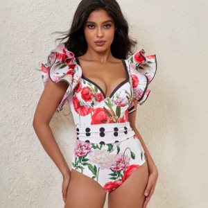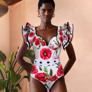 Luxury hotel pool vibes! This swimsuit is absolutely stunning. The 3D flower decor is so intricate and beautiful....