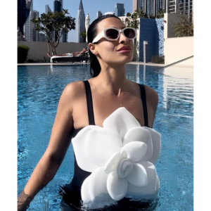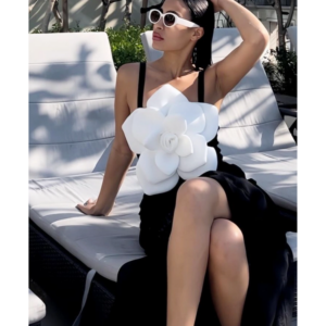 Luxury hotel pool vibes! This swimsuit is absolutely stunning. The 3D flower decor is so intricate and beautiful....