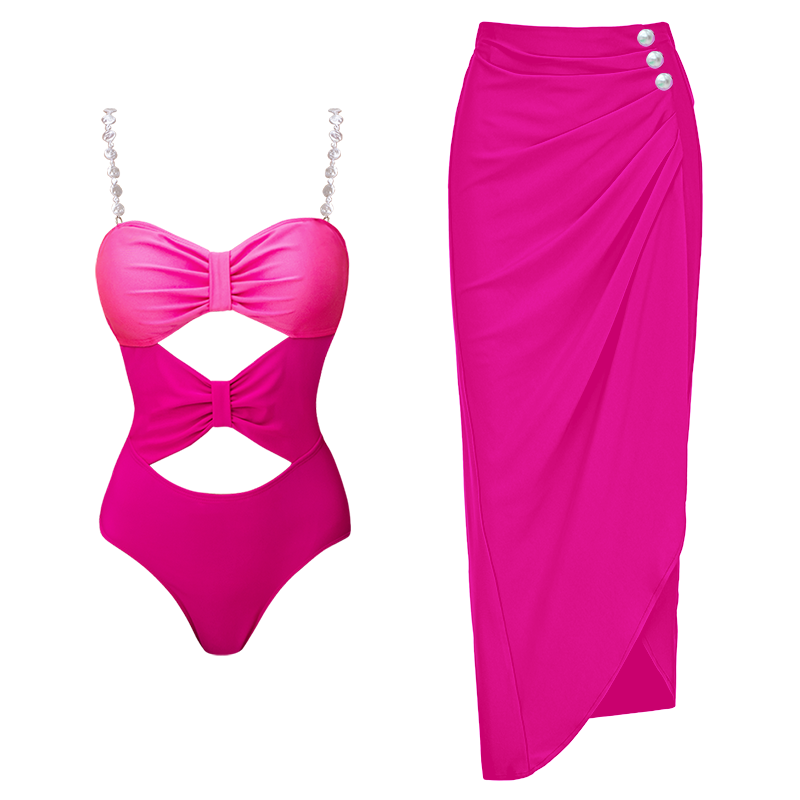 Perfect sunset beach look! This swimsuit is gorgeous. The cutout design with skirt is so elegant and the...