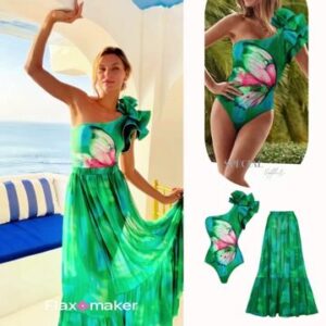 Perfect sunset beach look! This swimsuit is gorgeous. The cutout design with skirt is so elegant and the...
