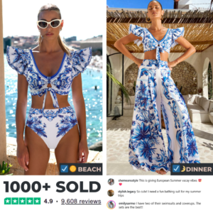 Perfect beach look! The flower bikini is so cute and the high waist design is very flattering. Wore...