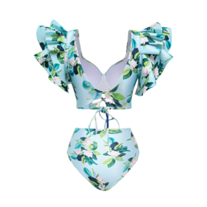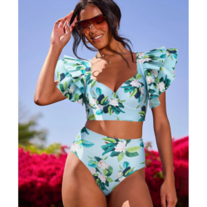 Perfect beach look! The flower bikini is so cute and the high waist design is very flattering. Wore...