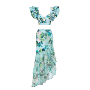 Perfect sunset beach look! This swimsuit is gorgeous. The cutout design with skirt is so elegant and the...