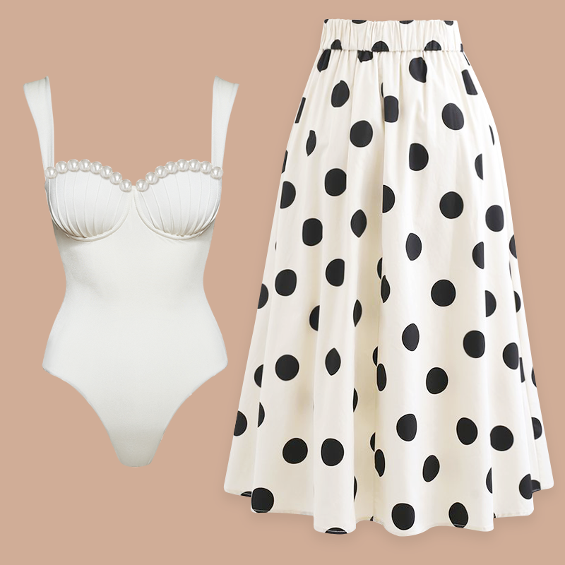 Gorgeous swimsuit! The black one piece with skirt is so elegant. I felt like a fashion model at...