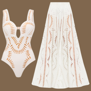 Perfect sunset beach look! This swimsuit is gorgeous. The cutout design with skirt is so elegant and the...