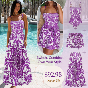 Perfect sunset beach look! This swimsuit is gorgeous. The cutout design with skirt is so elegant and the...