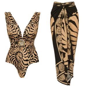 Perfect sunset beach look! This swimsuit is gorgeous. The cutout design with skirt is so elegant and the...