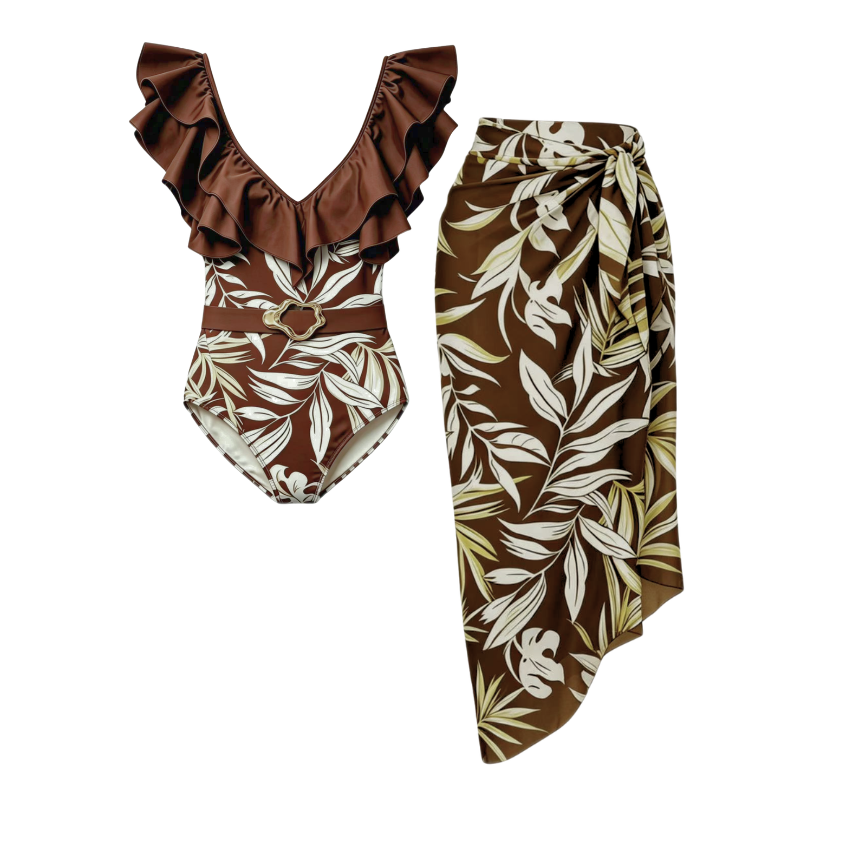 Perfect sunset beach look! This swimsuit is gorgeous. The cutout design with skirt is so elegant and the...