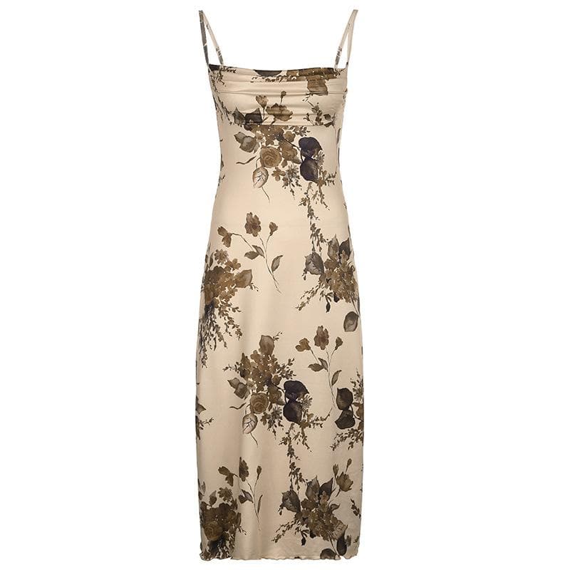 Sleeveless backless cowl neck flower pattern cami dress