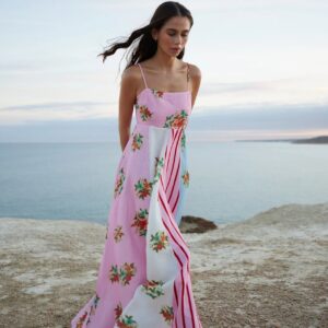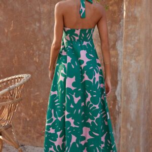 Floral Printed Wave Bandeau Fashion Maxi Dress