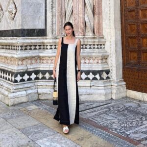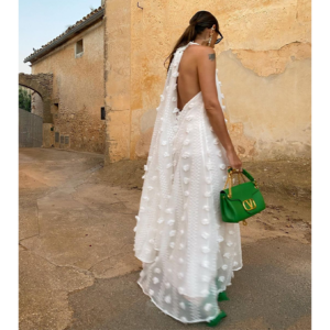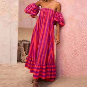 Detachable Sleeves Three-way Color Block Striped Maxi Dress