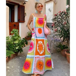 Tie-dyed Sling Backless Dress