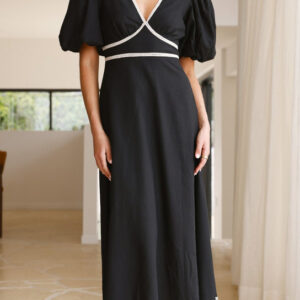 V Neck Puff Sleeve Midi Dress