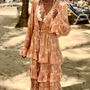 Vacation V Neck Lace Up Ruffle Dress