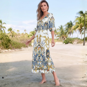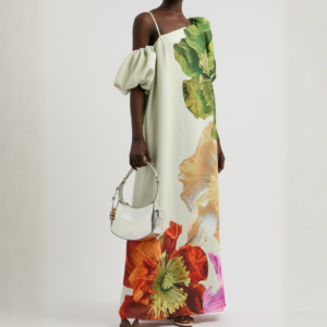 Floral Printed Wave Bandeau Fashion Maxi Dress