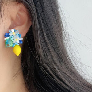 Handmade Lemon Beaded Stud Earrings