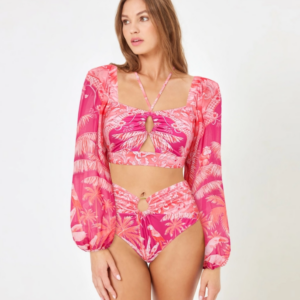 Long-sleeved Tropical Jungle Print Bikini Swimsuit and Sarong Flaxmaker