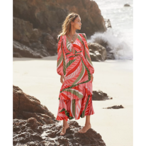 Long-sleeved Tropical Jungle Print Bikini Swimsuit and Sarong Flaxmaker
