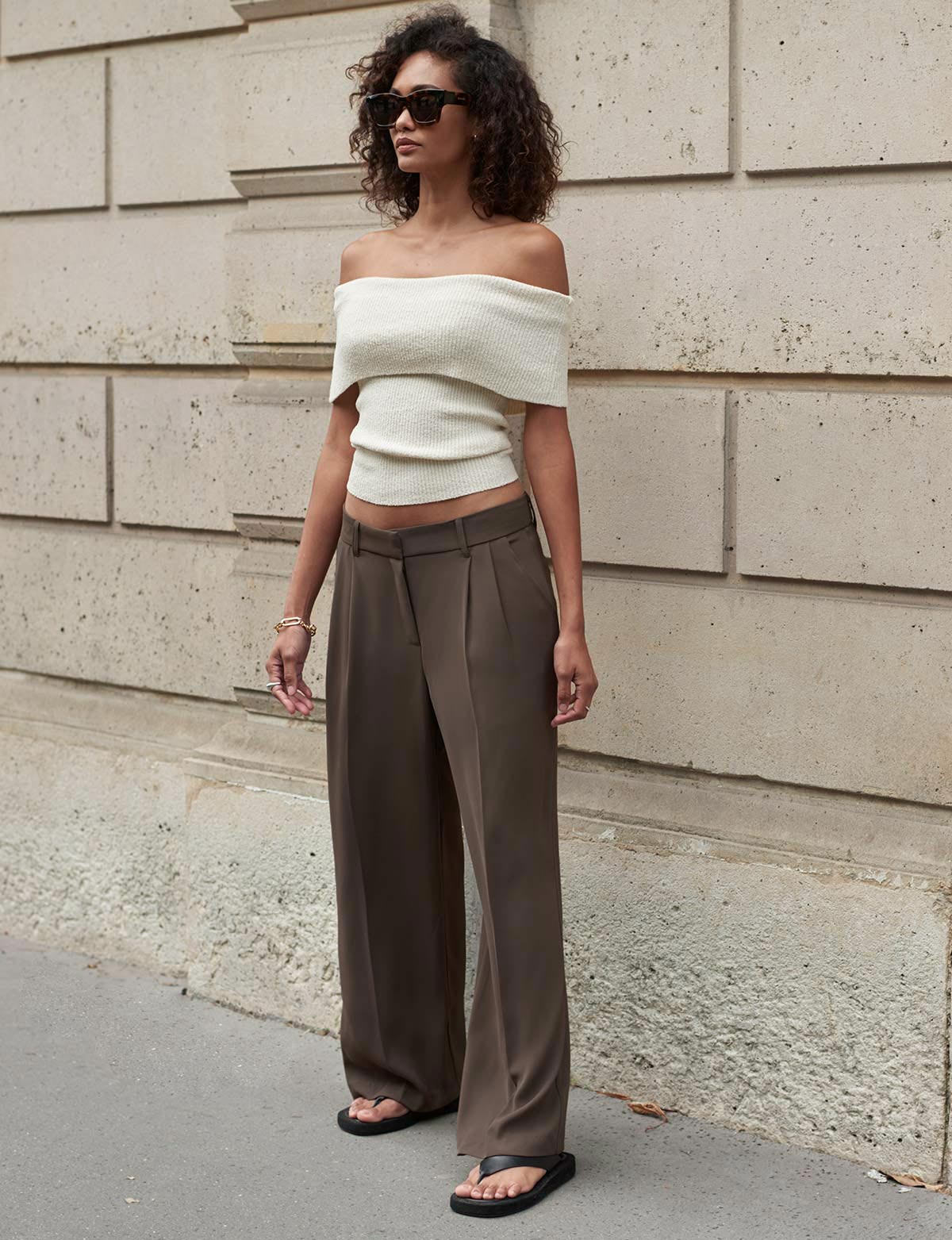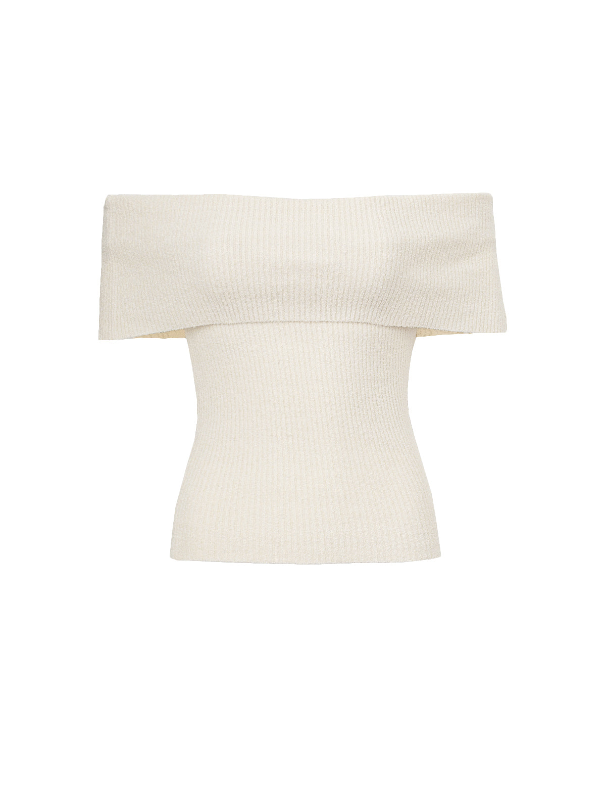 Textured soft knit off the shoulder fold top .