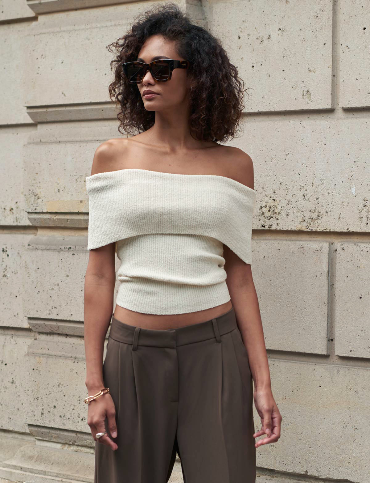 Popcorn Knit Off-The-Shoulder Top-BESTSELLER