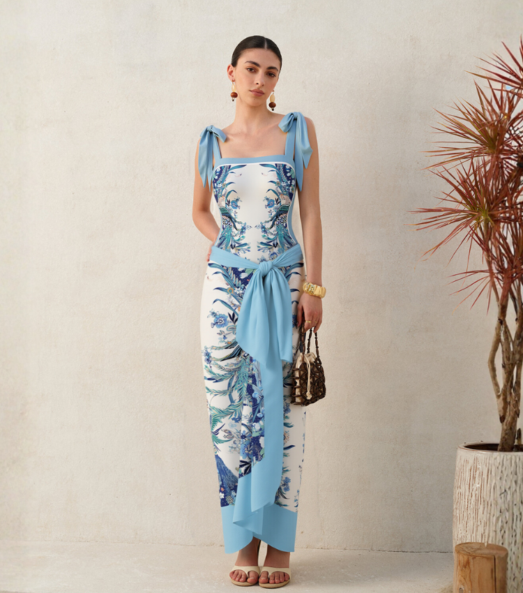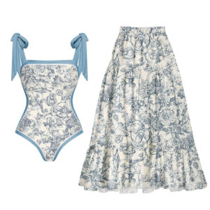 Reversible Tie-shoulder One Piece Swimsuit and Sarong/Skirt Flaxmaker