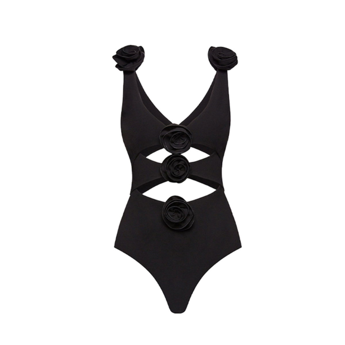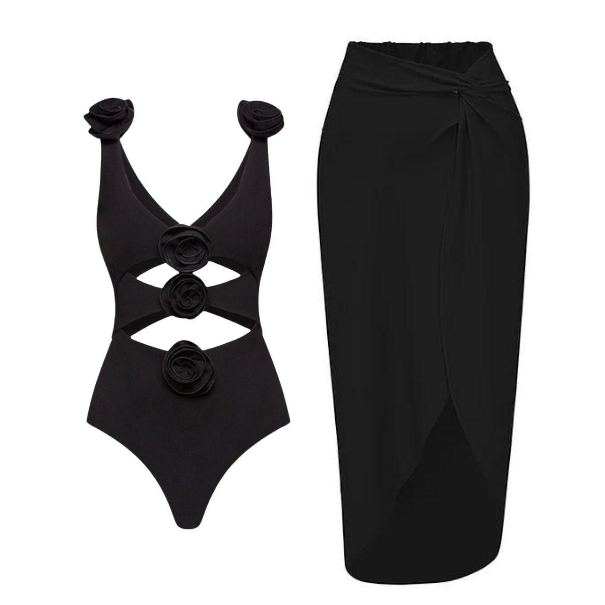 This black one piece is stunning! The 3D flowers add such a luxurious touch. I wore it at...