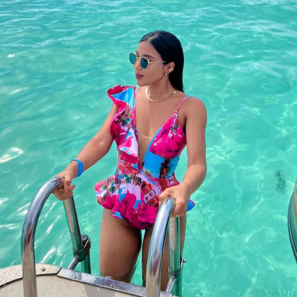 One Shoulder Ruffle Printed One Piece Swimsuit