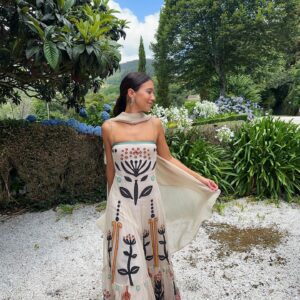 This black one piece is stunning! The 3D flowers add such a luxurious touch. I wore it at...