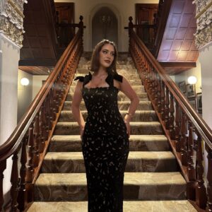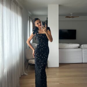 This black one piece is stunning! The 3D flowers add such a luxurious touch. I wore it at...
