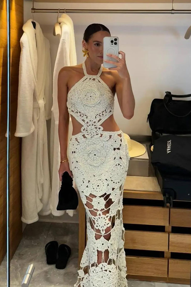 Stunning halter design! I wore this at a misty morning beach and the atmosphere was magical. The halter...