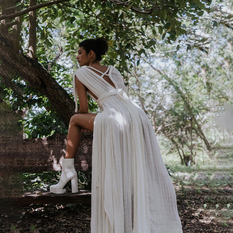 Stunning halter design! I wore this at a misty morning beach and the atmosphere was magical. The halter...