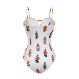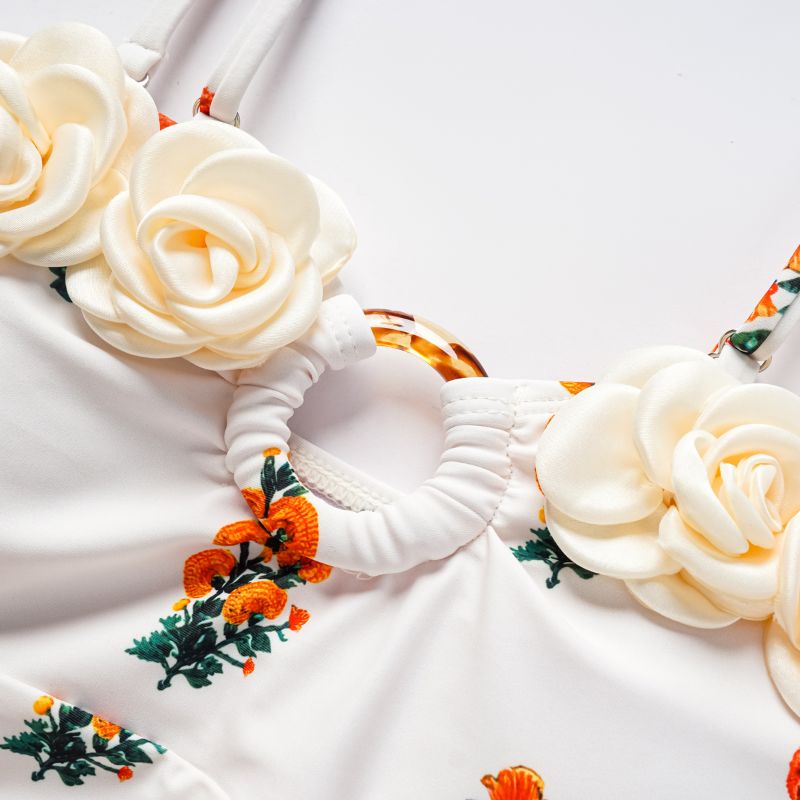 Flaxmaker Flower decor Printed One Piece Swimsuit and Sarong