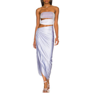Pearl Shoulder Strap Cutout Shiny Texture One Piece Swimsuit and Skirt
