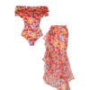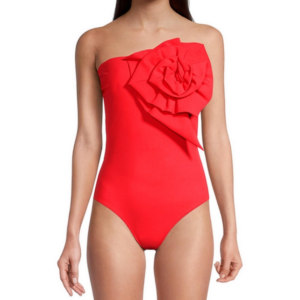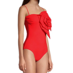 3D Flower Removable Strap Red One Piece Swimsuit and Sarong Flaxmaker