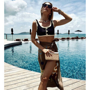 Gorgeous swimsuit! The black one piece with skirt is so elegant. I felt like a fashion model at...