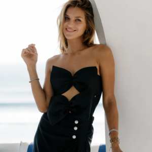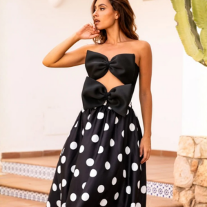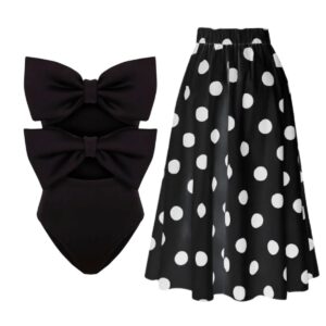 Bandeau Bowknot Cutout One Piece Swimsuit and Skirt