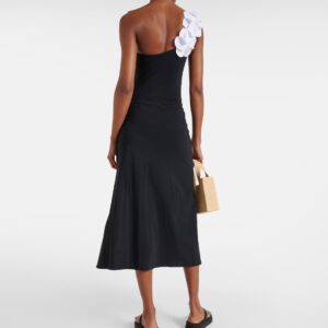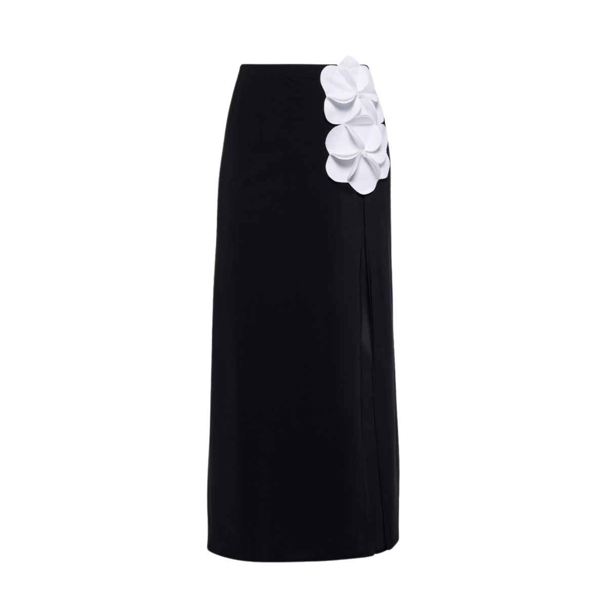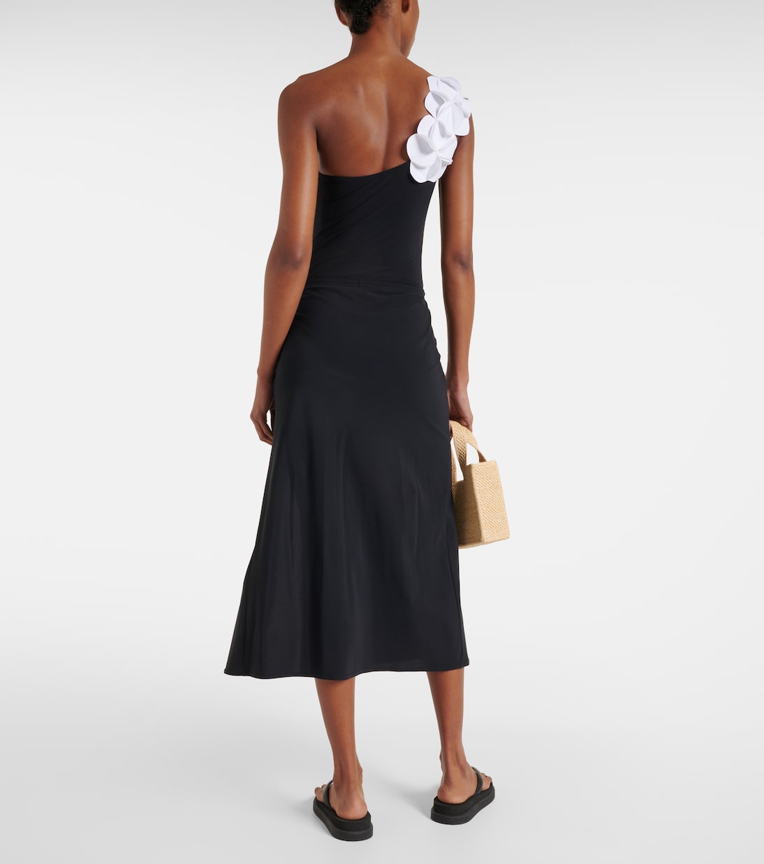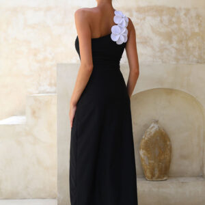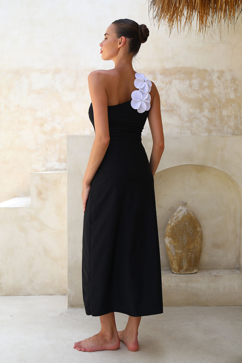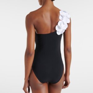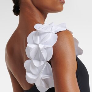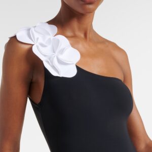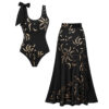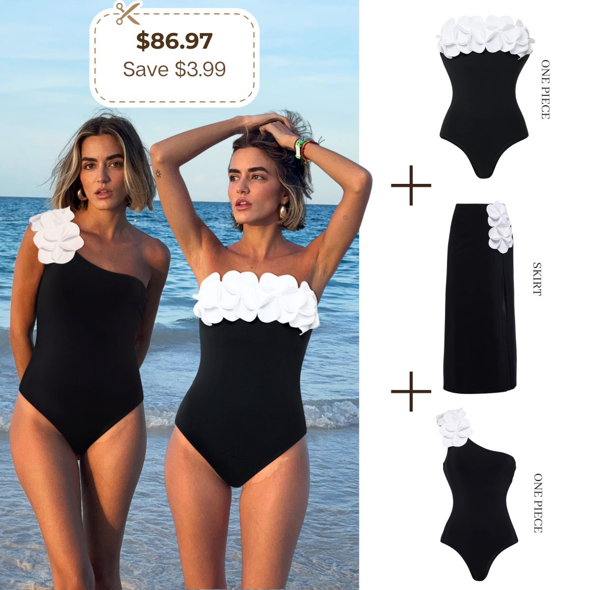 Oblique Shoulder 3D Flower Color Block One Piece Swimsuit And Skirt