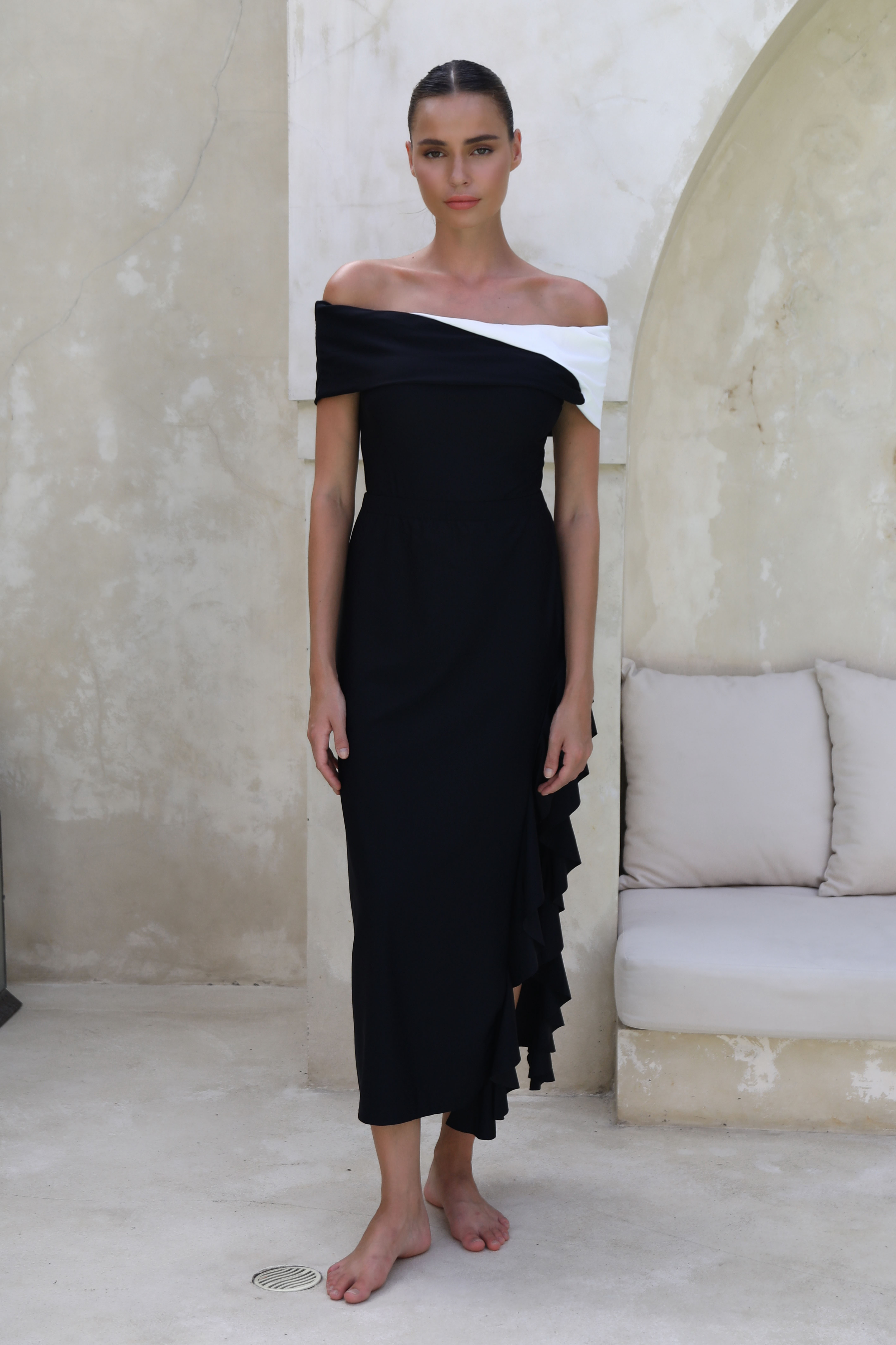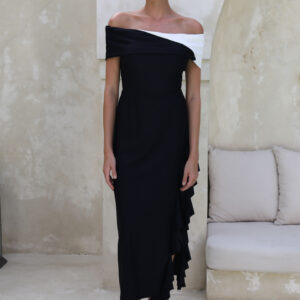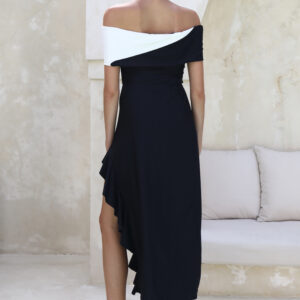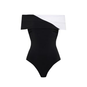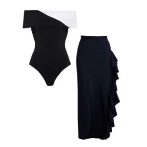 Off Shoulder Color Block One Piece Swimsuit and Skirt