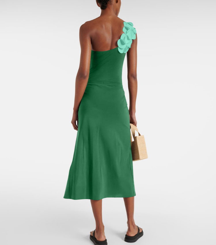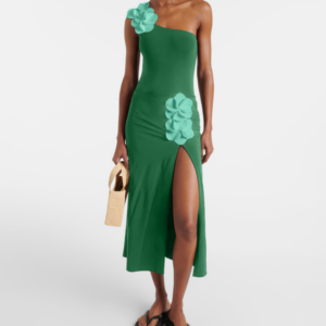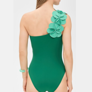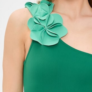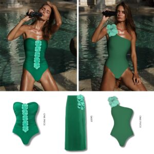 Oblique Shoulder 3D Flower One Piece Swimsuit and Skirt