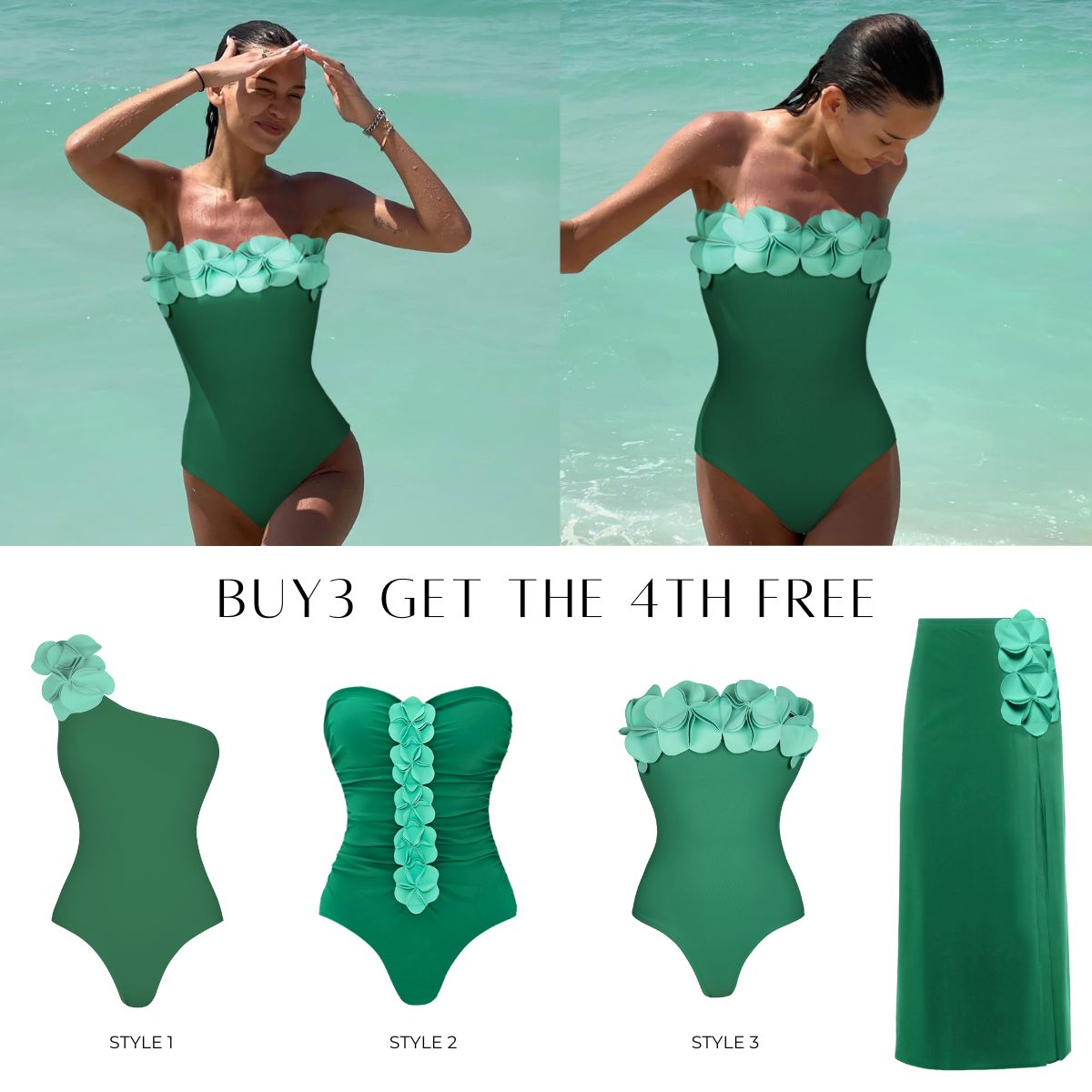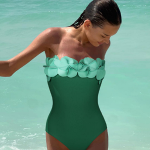 Bandeau 3D Flower One Piece Swimsuit and Skirt