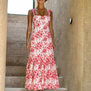 Cross Straps Printed One Piece Swimsuit and Skirt